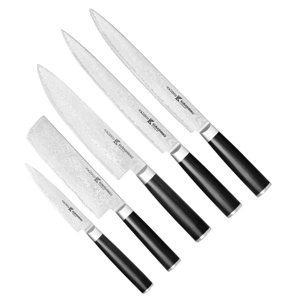 Dieses komplette Set ist für die anspruchsvolle Küche zu Hause gedacht. Das Kochmesser deckt die meisten Aufgaben ab, das Santoku-Messer bietet Kontrolle und Präzision, das Nakiri-Messer eignet sich hervorragend für Gemüse, das kleine Messer ist für kleine Arbeiten geeignet, und das Brotmesser sorgt für saubere Scheiben. Damit hat je für fast jede Situation in der Küche das richtige Werkzeug.