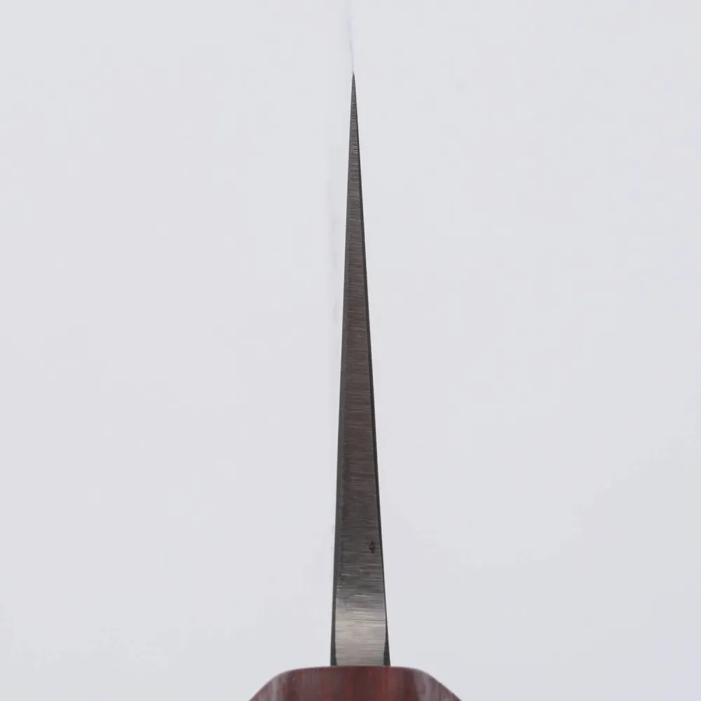 The knife features a Stainless Sanmai construction, where the hard core of the blade is encased in two layers of soft stainless steel. This provides durability and edge retention comparable to a carbon steel knife, but without the high-maintenance care. The result is a knife that stays sharp for longer and is easy to maintain, perfect for busy kitchens.