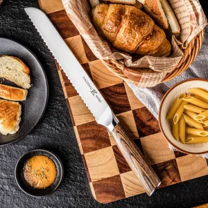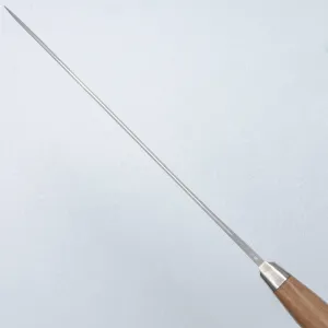 The 20 cm chef’s knife is your everyday workhorse. From finely chopping herbs to slicing meat or preparing vegetables, it handles nearly every task in the kitchen with ease. The slightly curved French-style profile allows smooth rocking and precise control.