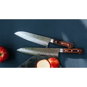 The blade is made from Japanese VG10 steel with a Damascus finish. VG10 is harder than the German steel used in entry-level knives, which means it holds its edge longer and feels noticeably sharper during use. It gives you that clean, crisp cutting experience people associate with Japanese knives.