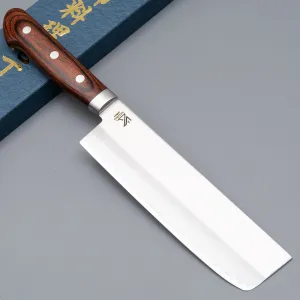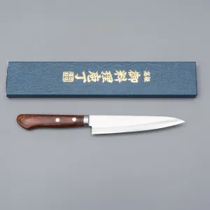 Have perfect tools for your exceptional cutting skills with the Kazoku Suitchi, presenting VG-1 Gold stainless steel blades (60 HRC). Enjoy extra hard blades with good amount of sharpness for effortless processing of veggies and red meat. Includes paring knives, santoku, sujihiki, and gyuto. These are truly Japanese knives and are made in the city of Seki, Japan.