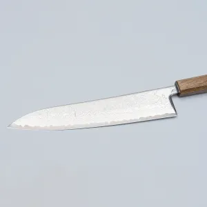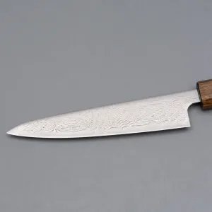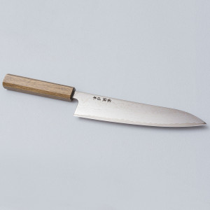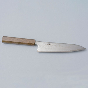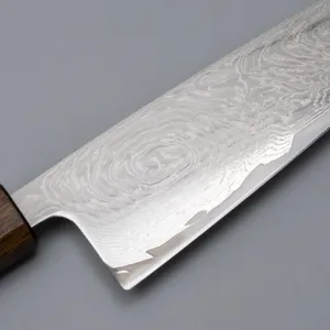 Among the most beautiful knives you can get hold of, the Kazoku Taifuu features beautiful Damascus steel patterned blades and dark oak handles. Made of AUS10 stainless steel, enjoy the cutting edge that stays for a long time (61 hrc). 'Taifuu' is the Japanese word for typhoon and these knives are made in Tosa, Japan. Includes a paring knife, gyuto, bunka, nakiri, and kiritsuke. Get these knives if you want a truly Japanese knife.
