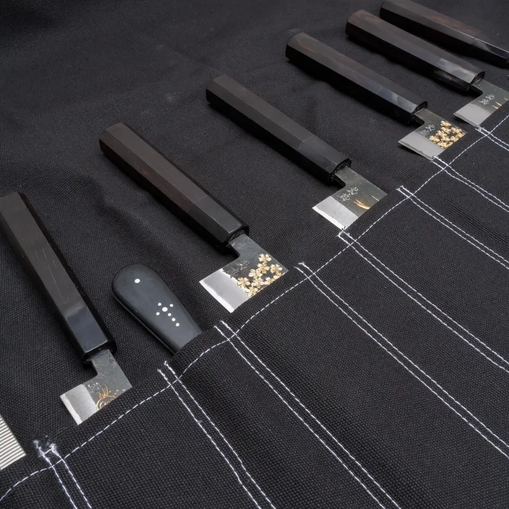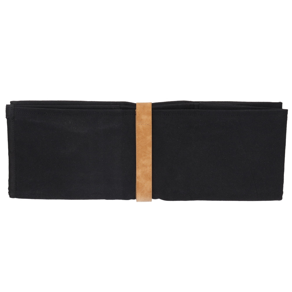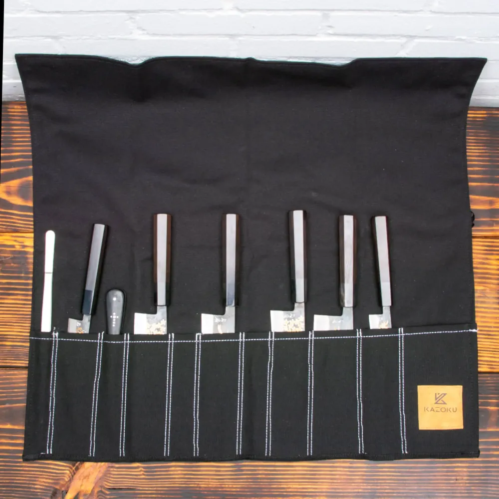 De Kazoku Canvas Messenmap Zwart 11 Vaks is de perfecte oplossing voor chef-koks en culinaire enthousiastelingen die een betrouwbare, draagbare manier nodig hebben om hun messen op te bergen en te vervoeren. Deze stevige en stijlvolle messenmap is gemaakt van hoogwaardig canvas uit India en biedt ruimte voor maximaal 10 messen, samen met extra vakken voor keukengereedschap en accessoires. De map kan worden vastgemaakt met twee trekkoorden, zodat jouw messen onderweg veilig en georganiseerd blijven.