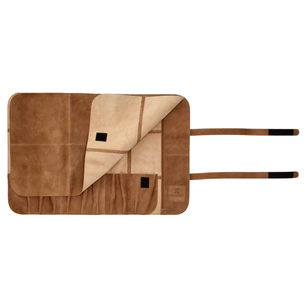 Kazoku Leren messenmap, 9 vakken + gereedschapzak, bruin