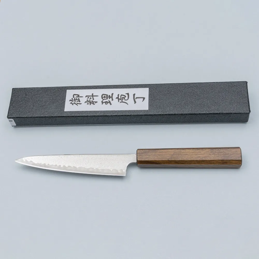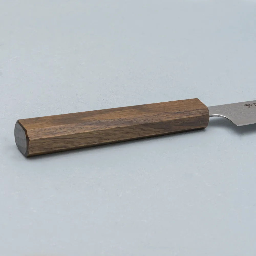 The octagonal handle is crafted from water-resistant oak wood, providing a secure grip even with wet hands. Lightweight and well-balanced, this knife excels in any kitchen, whether you're prepping vegetables, fruit, or delicate proteins.