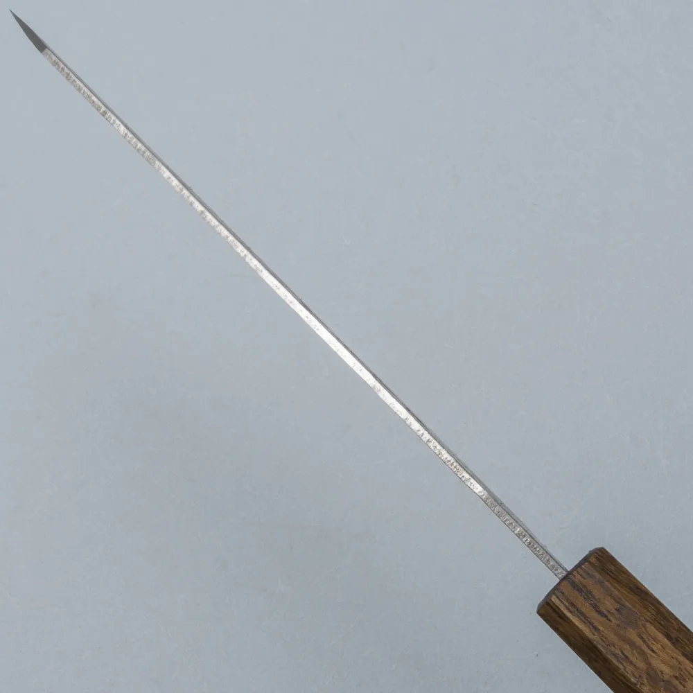De Kazoku Ginsan Nashiji Bunka is de perfecte keuze voor thuiskoks en professionals die op zoek zijn naar een scherp, betrouwbaar en betaalbaar Japans mes. Met een vlijmscherpe snede en een elegant, traditioneel ontwerp biedt dit mes uitstekende snijprestaties terwijl het toch licht en comfortabel in gebruik blijft. De eenvoudige maar kenmerkende Nashiji afwerking en het klassieke achthoekige eikenhouten handvat maken het een opvallende verschijning in elke keuken.