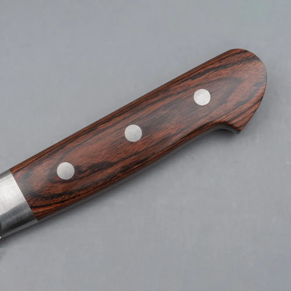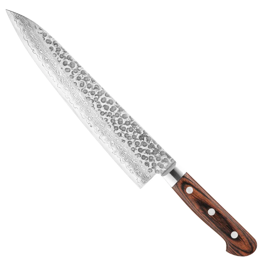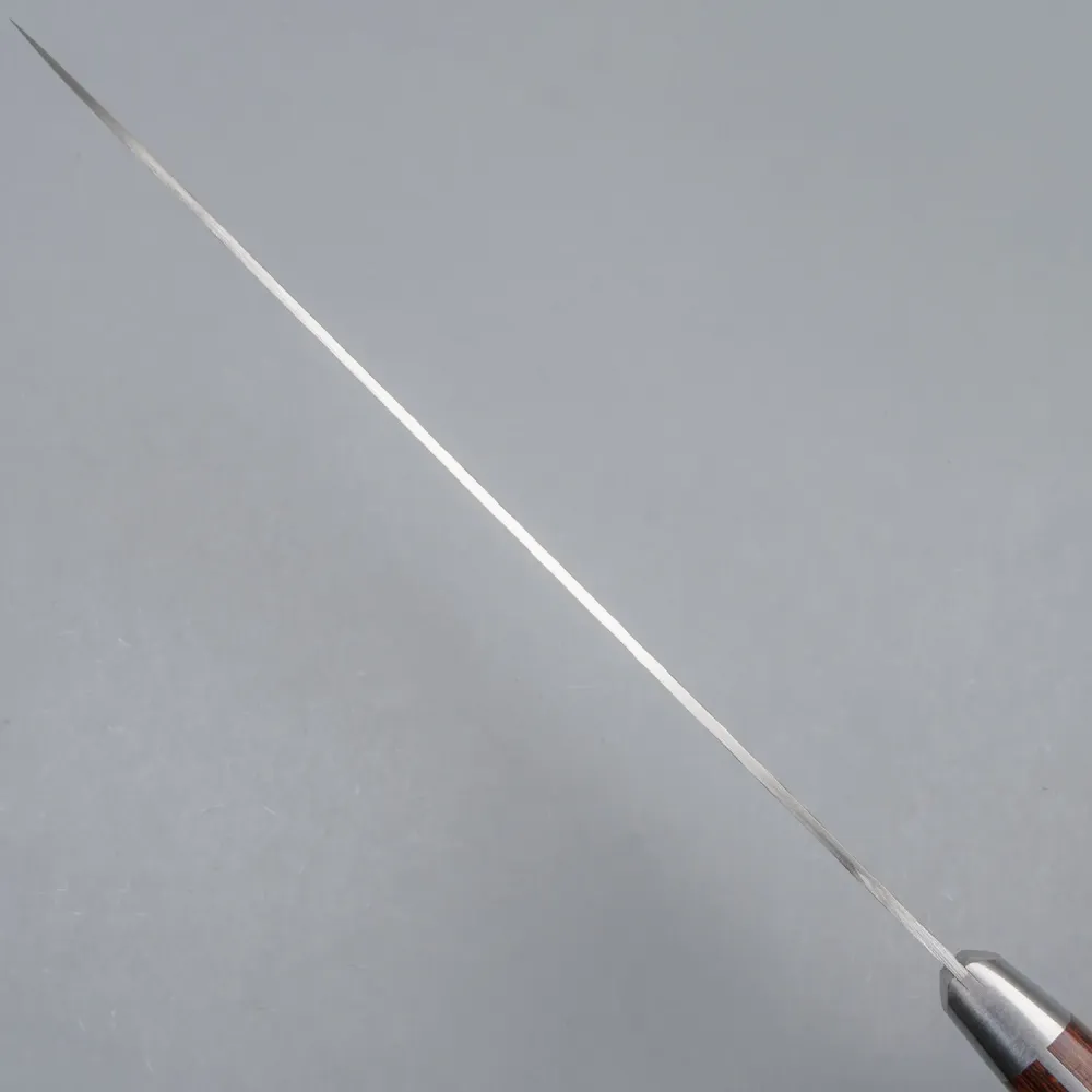 Dit mes heeft een lemmetlengte van 24 en wordt geleverd met een prachtige tsuchime afwerking die met de hand is gehamerd. Gemaakt van eersteklas Japans VG-10 roestvrij staal met een hoge hardheid. Dit zorgt voor dunne maar duurzame lemmeten waarmee je gemakkelijk kunt snijden. Je zult dit mes met plezier in jouw huis of in commerciële keukens hebben.