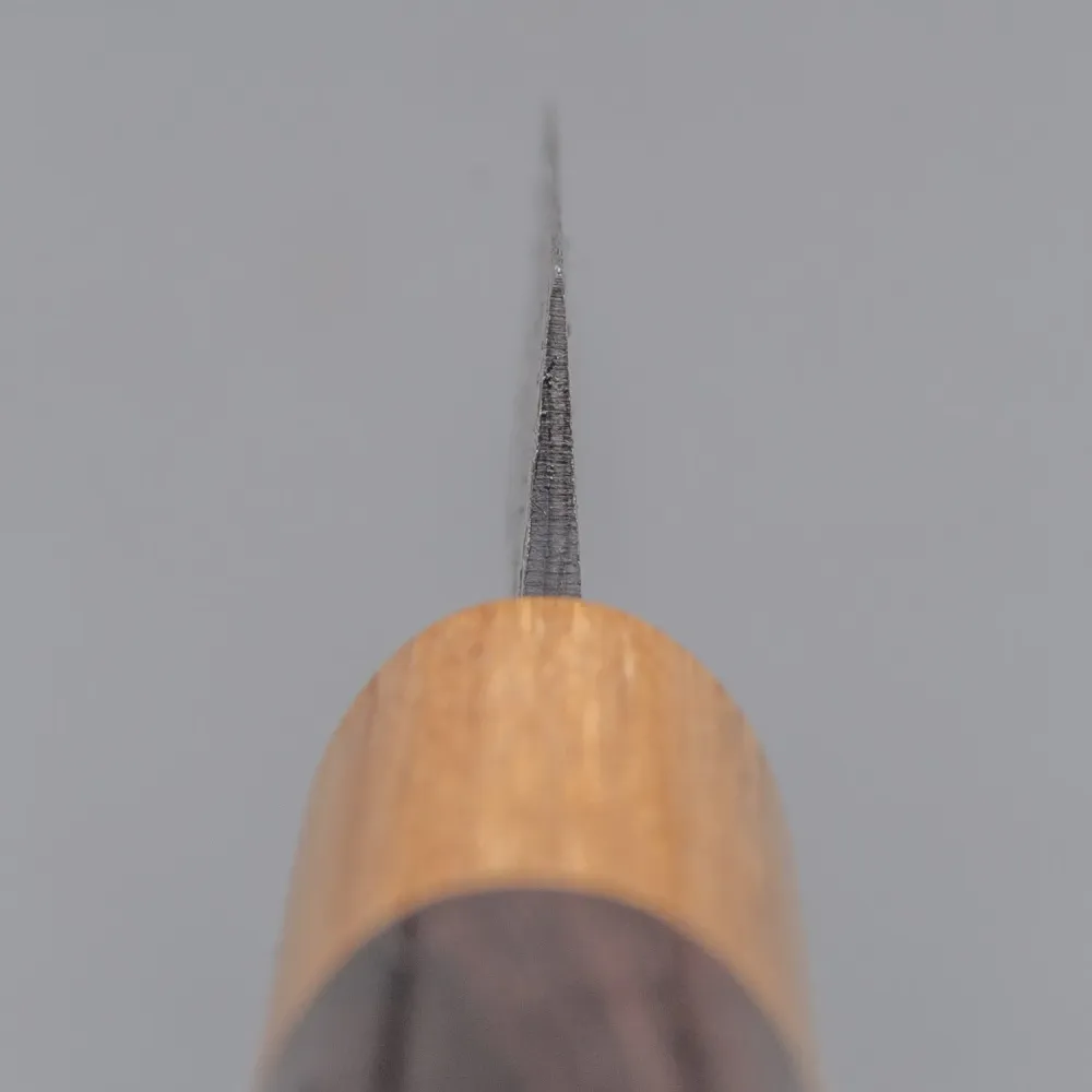 - Kernmateriaal: Aogami Blue Paper Super Steel, bekend om zijn hardheid en uitzonderlijke scherptebehoud.