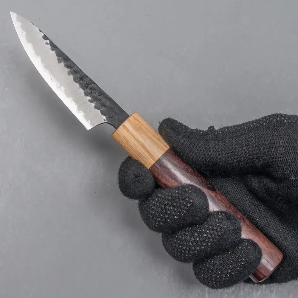 Ervaar het toppunt van precisie met de Kazoku Aogami Super Wa Petty 8cm, een prachtige versie van het traditionele groentemes. Gemaakt van Aogami Blue Paper Super Steel, biedt dit mes ongeëvenaarde scherpte voor diegenen die perfectie eisen bij elke snede. Of je nu een professionele kok bent of een thuiskok die kwaliteit belangrijk vindt, dit kruimelmes levert moeiteloze snijprestaties met een ongeëvenaarde scherpte.