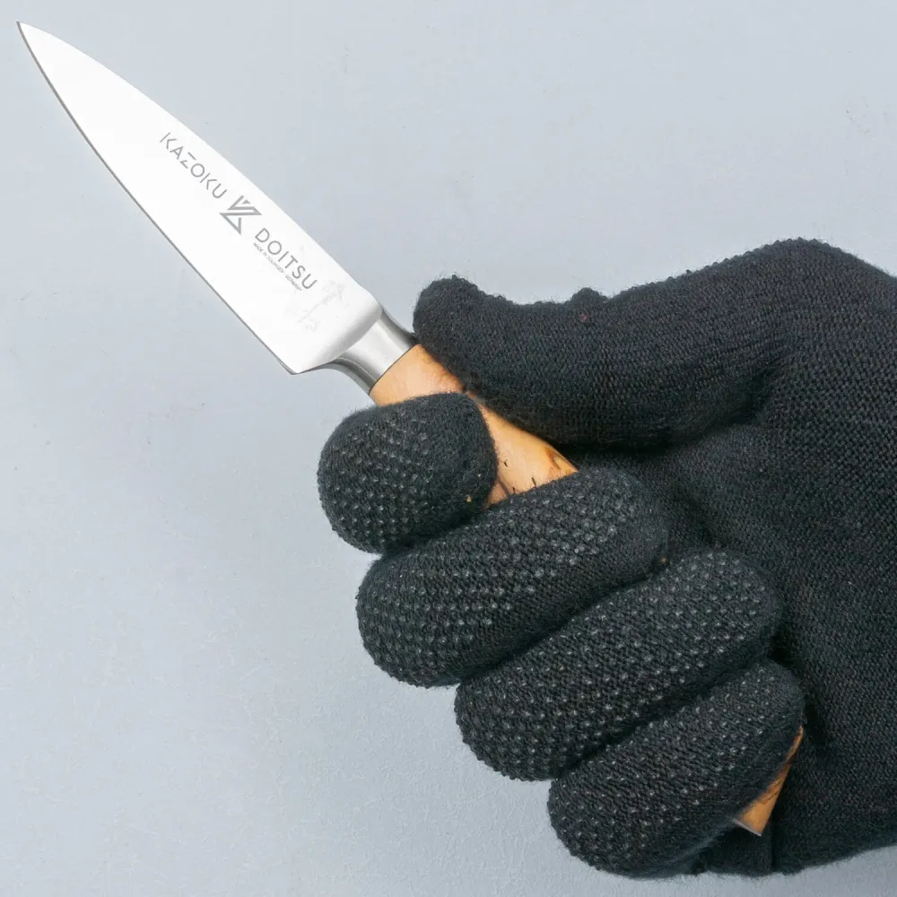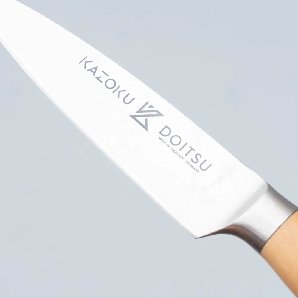 Het Kazoku Doitsu Groentemes is een prachtig vormgegeven mes dat snijden tot een fluitje van een cent maakt. Met zijn scherpe lemmet van 9 cm, gesmeed uit Duits kwaliteitsstaal, is dit mes perfect voor alle jouw groente- en fruitbereidingen. Het opvallende olijfhouten handvat voegt zowel elegantie als ergonomisch comfort toe, waardoor dit mes net zo aangenaam is om naar te kijken als om te gebruiken.