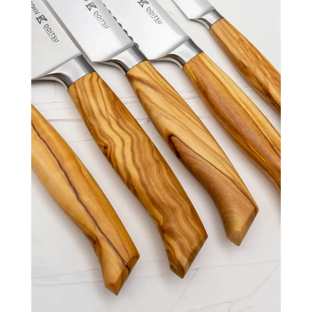 - Ergonomisch handvat van olijfhout: Gemaakt van wild olijfhout uit Andalusië, voor een comfortabele, stevige grip en een mooi contrast met het roestvrij staal.
